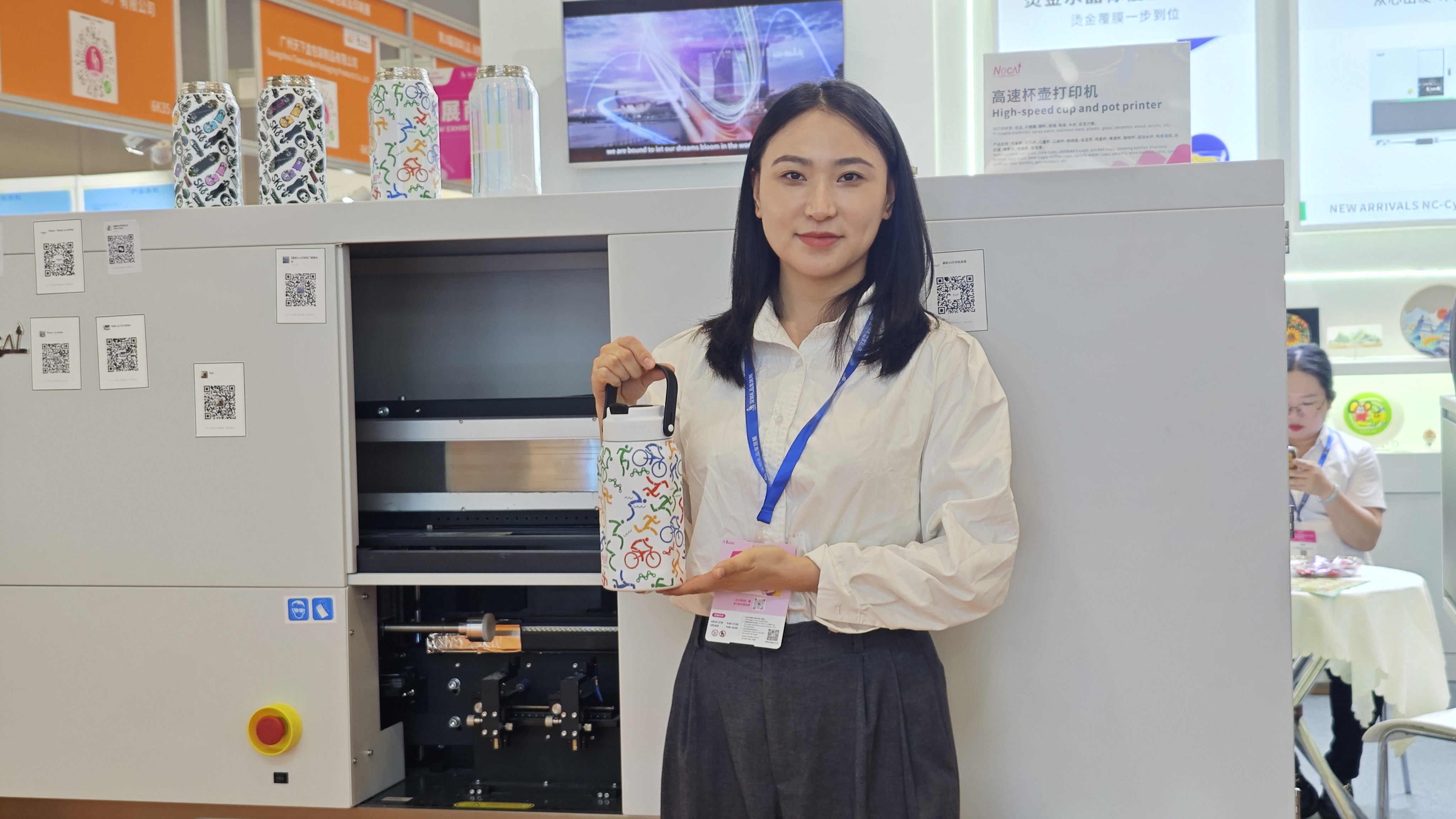 諾彩的展位前人頭攢動(dòng),熱鬧非凡。最新款的 UV 打印機(jī)成為了全場(chǎng)矚目的明星產(chǎn)品。工作人員熟練地操作著打印機(jī),向觀(guān)眾們展示其在多種材質(zhì)上的高效輸出能力。從定制水杯上精致的圖案,到工藝禮品上細(xì)膩的紋理,再到創(chuàng)意家居裝飾上絢麗的色彩,諾彩打印機(jī)都能精準(zhǔn)呈現(xiàn),整個(gè)過(guò)程迅速流暢,讓觀(guān)眾們驚嘆不已。