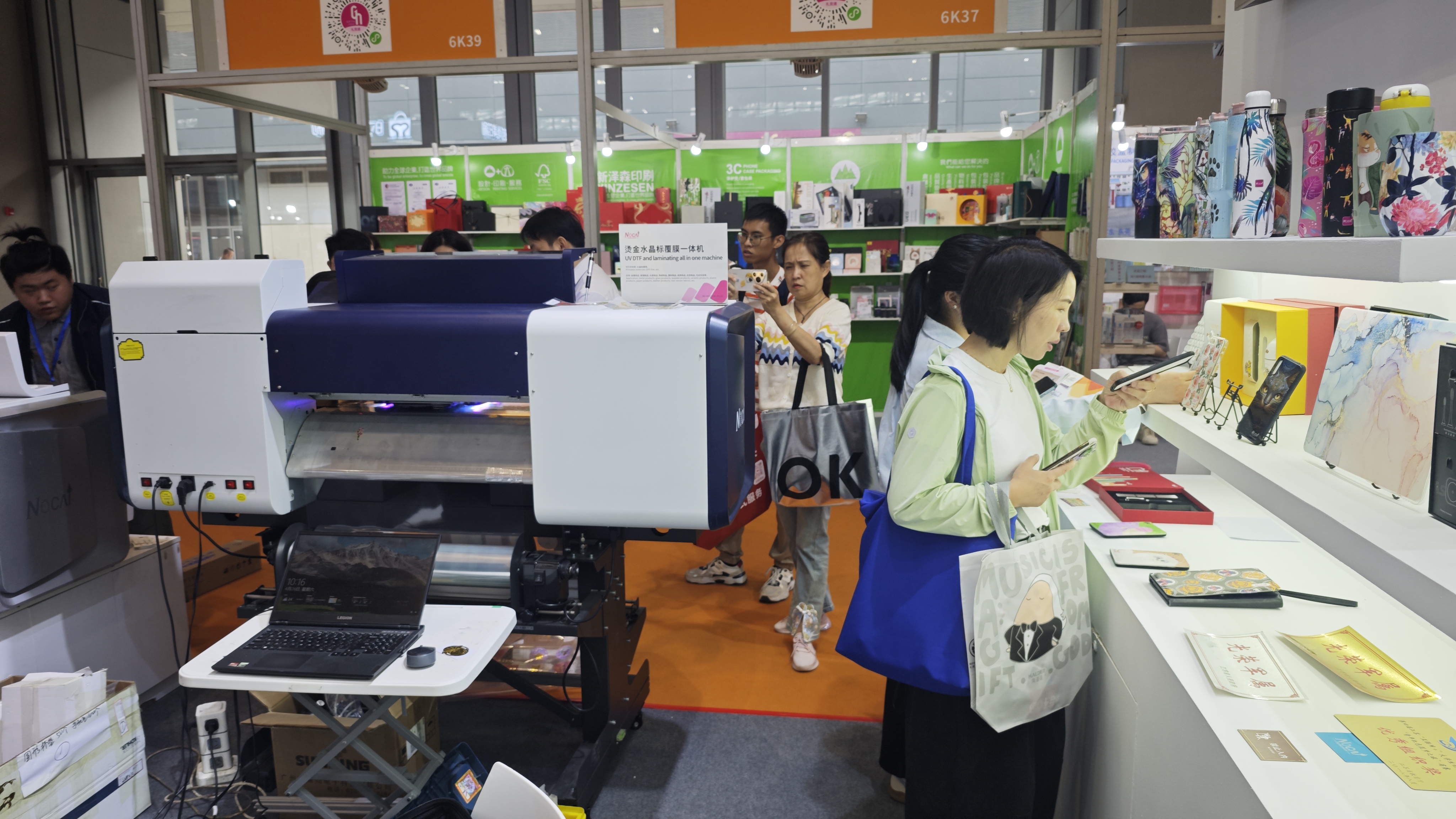 一位觀(guān)眾興奮地說(shuō):“這打印效果也太驚艷了!沒(méi)想到能在這么多不同的材質(zhì)上打印出如此高質(zhì)量的圖案,而且速度還這么快,真是大開(kāi)眼界。” 現(xiàn)場(chǎng)觀(guān)眾不僅可以觀(guān)看演示,還有不少人親自上手操作打印機(jī),體驗(yàn)從設(shè)計(jì)構(gòu)思到成品誕生的全過(guò)程。這種互動(dòng)式的體驗(yàn),讓大家對(duì)諾彩打印機(jī)的功能有了更直觀(guān)、更深入的理解,也激發(fā)了他們對(duì)于個(gè)性化定制禮品的無(wú)限創(chuàng)意靈感。
