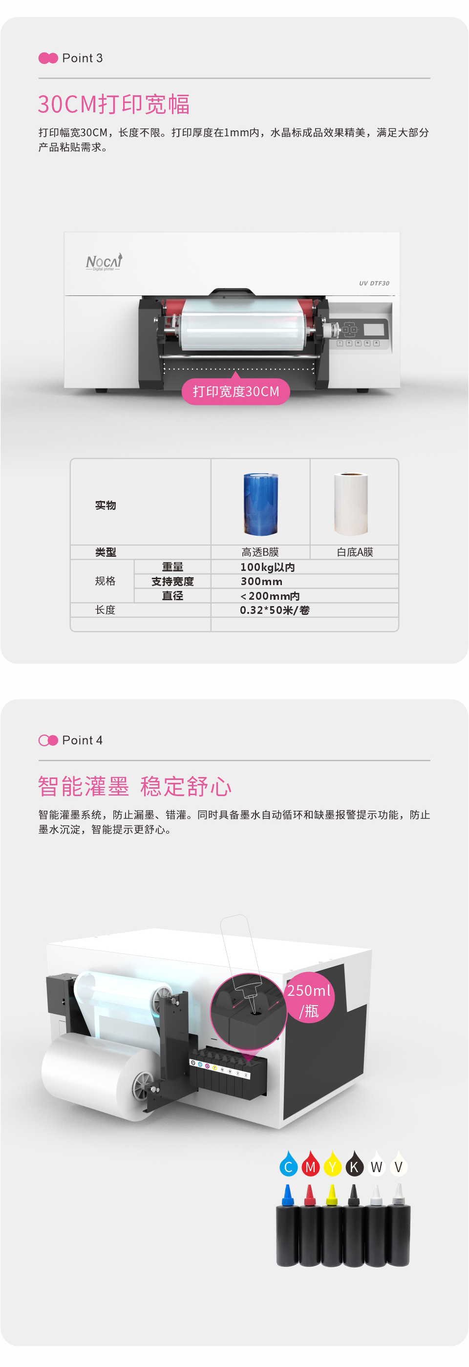 打印幅寬30CM,長度不限。打印厚度在1mm內(nèi),水晶標(biāo)成品效果精美,滿足大部分產(chǎn)品粘貼需求。
